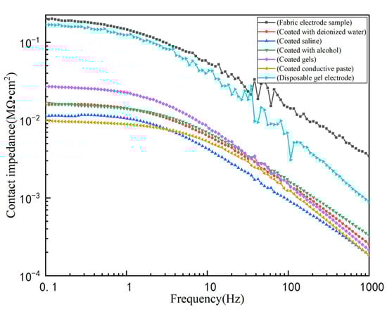 The contact impedance between the electrode surface of the cotton fabric and the skin after coating with different media reagents.