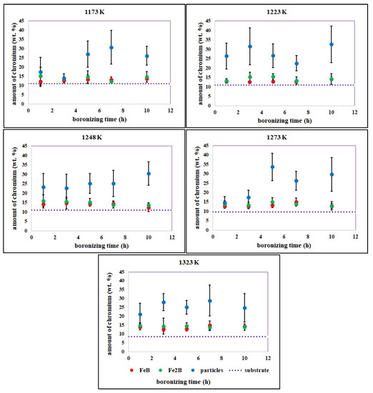 - Dybkov, V.I.; Lengauer, W.; Barmak, K. Formation of Boride Layers at the Fe–10% Cr alloy–boron Interface. J. Alloy. Compd. 2005, 398, 113–122. [Google Scholar] [CrossRef]