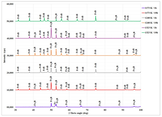 - Krukovich, M.G.; Prusakov, B.A.; Sizov, I.S. The Equilibrium Diagram of ‘Boron-Iron’ Binary System. In Plasticity of Boronized Layers; Springer: Cham, Switzerland, 2016; Volume 237, pp. 23–38. [Google Scholar]