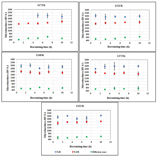 - Jurči, P.; Hudáková, M. Diffusion Boronizing of H11 Hot Work Tool Steel. J. Mater. Eng. Perform. 2011, 20, 1180–1187. [Google Scholar] [CrossRef]