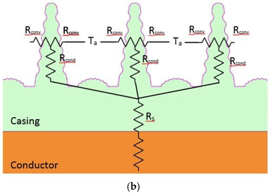 (a) Fin thickness of bus duct conductor casing heat sink (b) Thermal resistance network.