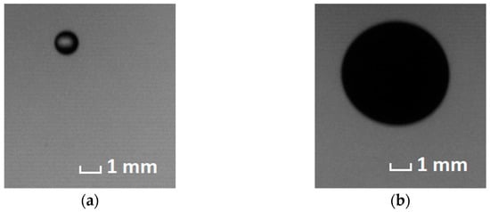 Realizable droplets of distilled water with diameters: (a) 0.75 mm; (b) 3.40 mm.