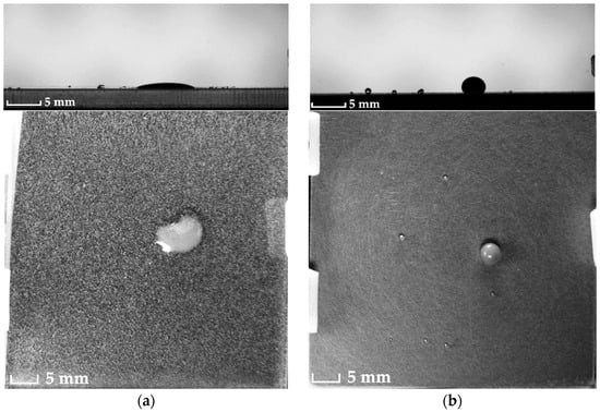 - Aluminum with the hydrophobic coating NeverWet (Rust-Oleum, Vernon Hills, IL, USA). Cutting of the aluminum plates was carried out on an electric erosion wire-cutting machine (Mitsubishi MV-1200R Advance), followed by polishing of the surface as preparation for applying the hydrophobic coating (Figure 4c).