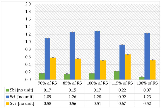 The functional parameters (Sbi, Sci and Svi) are important tribological parameters and can be used to analyse contact surfaces of all types. The levels of Sbi (surface bearing parameter) and Svi (stroke volume parameter) are similar, but Sbi is lowest for a cutting speed of 130% of RS, whereas Sci (core fluid retention parameter) is lowest for a speed of 115% of RS, as shown on Figure 13. Svi indicates that all samples have a similar number of indentations relative to the load-bearing surface. Sbi indicates that all samples have a similar bearing capacity (calculated for the height of the entire surface). A reduced Sci value indicates a fairly flat cut edge, where the cut zone, reflection zone and dross zone are similar in the three areas. If large-scale structures with such shaped cut surfaces need to be painted, the cutting speed should not have a significant impact on the paint demand.