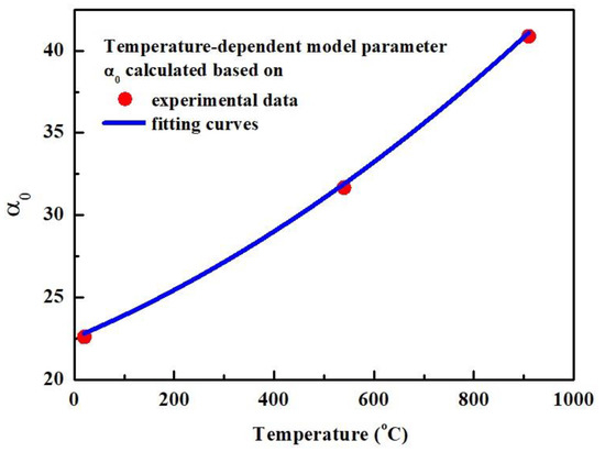 According to Table S2 of the Supplementary Materials, the larger α0 is obtained at a higher temperature, which indicates that the total erosion rate is smaller than that calculated at RT. This result is in accordance with those from Ref. [28]. Therefore, α0 is approximated as a quadratic function of temperature given by