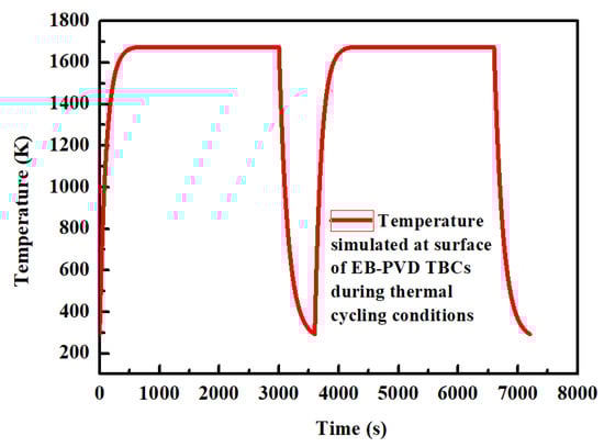 As an example of a practical environment for EB-PVD TBCs application, the cycling temperature profile is assumed to consist of a 10-min increase from room temperature (RT) to 1400 °C, a 40-min high-temperature dwell period (tHIGH = 40) followed by 10 min of temperature drop. The cyclic temperature field pattern used to describe temperature variations within a thermal cycle was chosen as