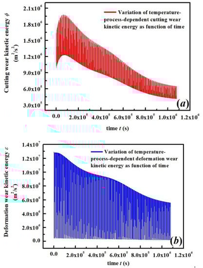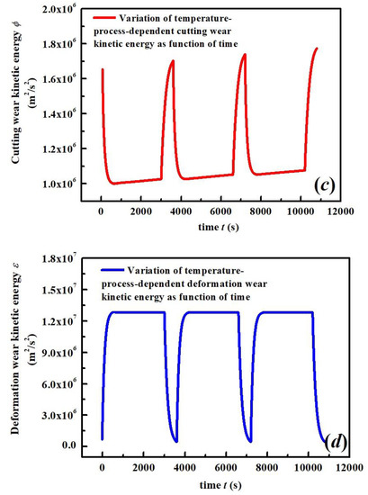 Unlike the parameters α0 and n, it is evident that the calculated cutting wear kinetic energy ϕ and deformation wear kinetic energy ε are more dependent on a variation in temperature, as shown in Table S2 of the Supplementary Materials. Hence, in the present study, it is suggested that the cutting wear kinetic energy ϕ and deformation wear kinetic energy ε are governed by multiple factors.