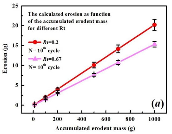 4.2.2. The Calculated Erosion Versus Accumulated Erodent Mass under Different Ratio Rt