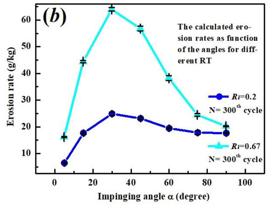 4.2.3. The Calculated Erosion Rate Versus Impact Angles under Different Ratios Rt