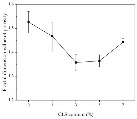 Figure 16. Fractal dimension value of porosity of improved loess with different CLS content.
