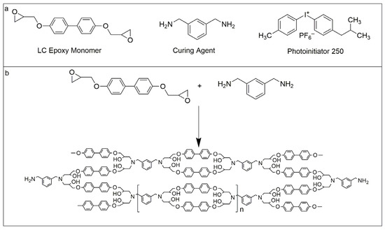 - Carfagna, C.; Amendola, E.; Giamberini, M.; Hakemi, H.; Pane, S. Liquid crystalline epoxy resins in polymer dispersed liquid crystal composites. Polym. Int. 1997, 44, 465–473. [Google Scholar] [CrossRef]