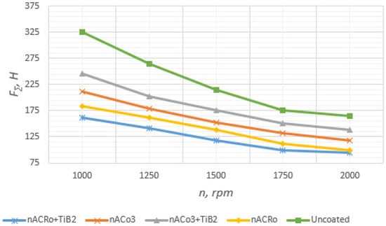 Firstly, there is a significant decrease in temperature–force loading in the cutting zone by an average of 15%–25% both in terms of cutting temperature and cutting force components, and this phenomenon, according to numerous studies, can be explained by the formation of secondary structures on the friction surfaces in the form of aluminum and titanium oxides, which have heat-reflecting (shielding) and lubricating properties;