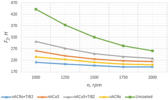 According to research [,], control of the technological process of the formation of nanostructured coatings allows the reception of compositions with variable properties depending on the percentage ratio of components. The hardness, friction coefficient, surface roughness, and coating color change. All this makes it possible to optimize the coating properties for a specific task. Applications include cutting, shaping, stamping, and other tools. For example, for TiZrN, high hardness, thermodynamic stability, and the strength of connection are caused by the high similarity of structures and the close sizes of atoms providing the presence of significant areas of mutual solubility of atoms Ti and alloying component Zr in corresponding nitrides. The maximum microhardness of coating TiZrN of 32.2 GPa is observed at the content of 6%–10% Zr, which exceeds the value of Hµ for coating TiN of 22%. The covering (Ti-Zr)CN on the basis of carbonitrides Ti and Zr, the microhardness of which corresponds to 64 GPa, is relative. In research [,,], the extreme character of change in the intensity of wear of the cutting tool depending on the structure of the nanostructured coating is established. During the processing of workpieces from steels 12 × 18H10T, the minimum intensity of wear was observed at plates from alloy BK6 with TiZrN coating at a content of 8%–16% Zr. It is established that the minimum wear rate of the plates with carbonitride coating (Ti-Zr)CN corresponds to the same content of the alloying component as that of the plates with nitride-based coating. The minimum wear is observed at the content of acetylene of 25%–35% and 20%–25% when processing workpieces made of 12X18H10T steel. Studies of the machining process and the thermal and stress state of the cutting tool wedge have established that the coatings TiZrN and (Ti-Zr)CN increase the number of cycles before all longitudinal cracks escape to the back surface compared to the cutting tool with conventional coating by five times, and for nanostructured coatings TiZrN and (Ti-Zr)CN, by 8 and 6.25 times, respectively []. Thus, it can be concluded that nanostructured coatings allow an increase in the serviceability of cutting tools due to management of the parameters of coating structure, directionally controlled, which can significantly change coating properties; provide high crack resistance, strength properties, and a high level of compressive residual stresses restraining processes of the formation and development of cracks; and provide a low level of contact and thermal loads, minimizing processes of coating destruction.