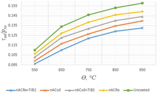 - Increasing the hardness ratio of the tool’s contact surfaces and the workpiece (by reducing the dependence of the physical and mechanical properties of the contact surfaces on the temperature in the working zone, considering the phenomena of adaptation (self-organization) during friction) [,,,,].