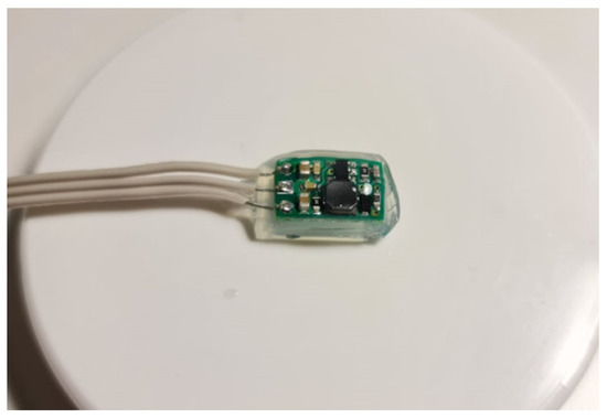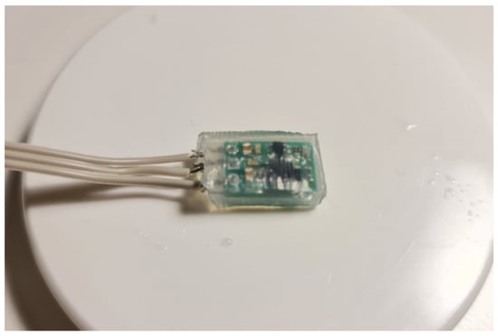 The same device type was encapsulated with medical-grade silicone Silastic RTV 9161, with no conductivity issue due to its zero water content. The conductivity tests performed before and after encapsulation showed minor modification in resistance value (Figure 3).