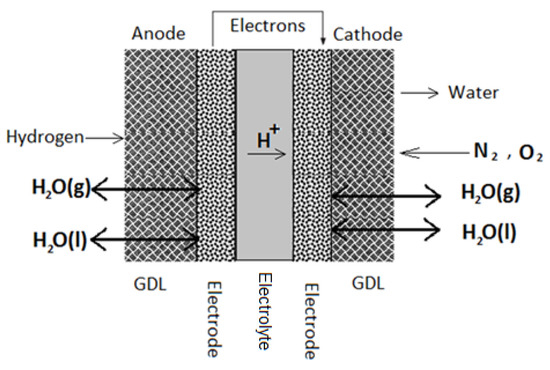 The GDL also aids in the water management of PEMFC by allowing the correct quantity of water to reach the MEA and keep it humidified. Moreover, it also helps the produced water discharge from the cathode and prevents flooding. Because the GDL is usually porous and allows for gas transport, it is typically treated with hydrophobic polymers to help prevent overflowing and flooding.