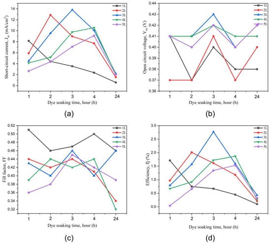 | No. of Layers | Dye Soaking Time | Jsc (mA/cm2) | Voc (V) | Fill Factor (FF) | η (%) |