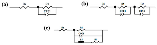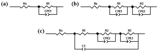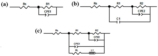 Equivalent circuits of (a) Colmonoy, (b) Inconel, and (c) Al coatings at 40 °C.