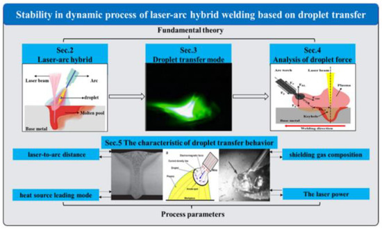 Liu Q, Wu D, Wang Q, Zhang P, Yan H, Sun T, Zeng J, Yan M, Liu Z, Li R. Research Status of Stability in Dynamic Process of Laser-Arc Hybrid Welding Based on Droplet Transfer Behavior: A Review. Coatings. 2023; 13(1):205. https://doi.org/10.3390/coatings13010205