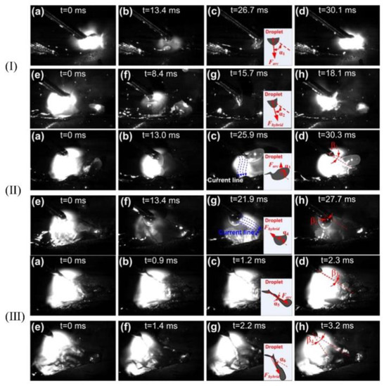 - Liu, S.; Zhang, F.; Dong, S.; Zhang, H.; Liu, F. Characteristics analysis of droplet transfer in laser-MAG hybrid welding process. Int. J. Heat Mass Transf. 2018, 121, 805–811. [Google Scholar] [CrossRef]