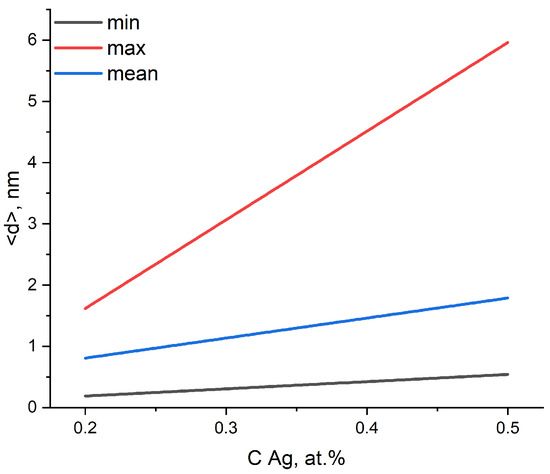 The dependence of the particle size containing silver on the Ag dopant concentration.