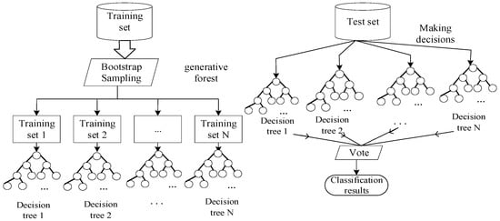 In 2001, Breiman proposed the Random Forest algorithm [27], a classifier that can provide training and integrated estimation of samples using multiple decision trees. Figure 9 is the schematic diagram of its algorithm.