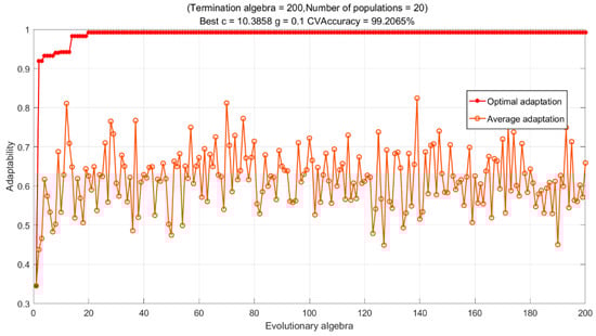 SMA parameter settings: the initial population size is set to 20, and the number of terminating generations is set to 200; the penalty parameter is set to 0.01 to 500; the kernel parameter is set to 0.01 to 100, and the weighting factor is set to 1. Figure 15 shows the changing trend of the fitness function value.