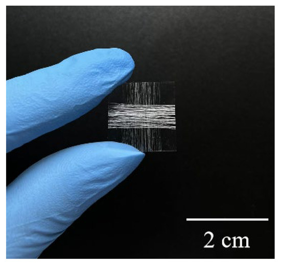 The mechanical properties of silkworm silk were tested at 25 °C and 60% relative humidity with an MTS Industrial Systems (Shenzhen, China) 2 kN tensile testing machine at a constant crosshead speed of 10 mm/min. The experimental stress–strain curves were recorded to obtain the elongation at break and breaking strength.
