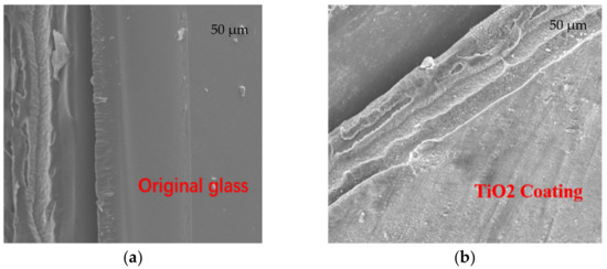 SEM images of super-hydrophilic TiO2 coating [81]. (a) Original solar glass; (b) Solar glass with TiO2 coating.