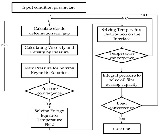(the dimensionless coordinate along the direction of roller motion). It is assumed that the Newtonian fluid is compressible, and the calculation process of oil film pressure and film thickness distribution is shown in