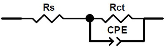 Equivalent electrical circuit in the electrochemical impedance spectroscopy analysis.