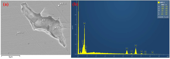EDS results of the treated sample after fouling removal: (a) position of detection; (b) chemical compositions.