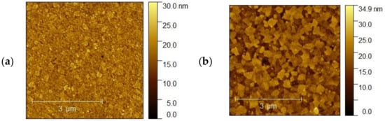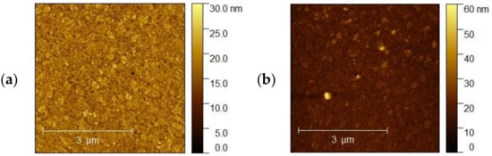 (a,b) AFM images of the (a) ITO3 5 nm and (b) ITO3 for 10 nm.