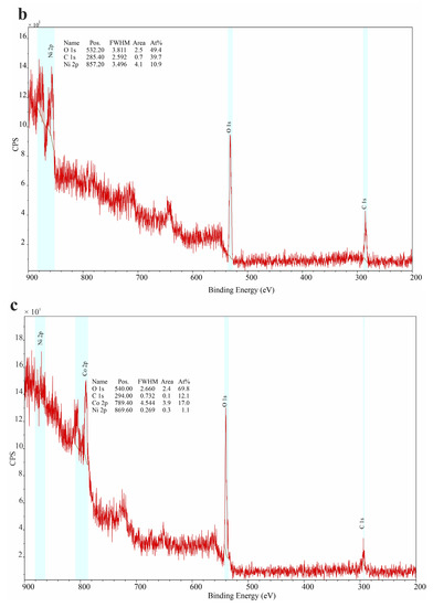All the utilized chemicals were of the ACS reagent grade and used without any further purification. The metal precursors, including the nickel nitrate hexahydrate (Ni(NO3)2·6H2O, ≥98%), cobalt nitrate hexahydrate(Co(NO3)2·6H2O, ≥98%), ammonium hydroxide (NH4OH, 25%), potassium hydroxide (KOH) and polyvinylpyrrolidone (PVP, 29,000 a.m.u.), were purchased from Sigma Aldrich [37,38].