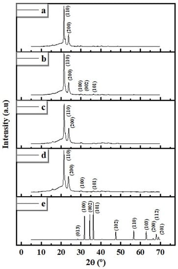 The XRD diffractograms of neat electrospun, cast PCL, and composite membranes and films (PCL/ZnO-NPs) are shown in Figure 9, along with the XRD pattern of ZnO-NPs for reference.