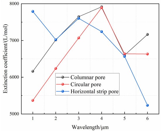 Variations in extinction coefficients with incident wavelengths for different pore characteristics.