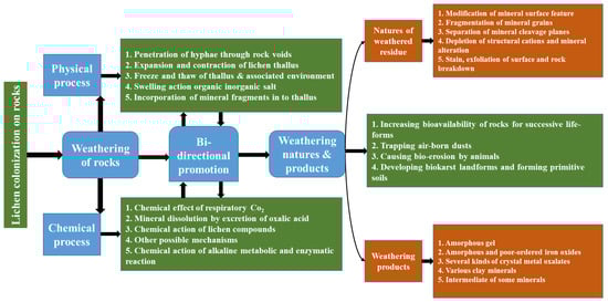 The effects of lichens on the substrate. Reprinted with permission from ref. [95]. Copyright 2023 Elsevier.