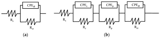Equivalent electrical circuit model for (a) uncoated specimen, (b) PE- and QSME-coated specimens.