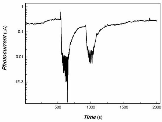 The photocurrent responses of 4#-ZnO/MnSx nanocomposites to a 20 mW 1064 nm light resource.