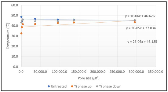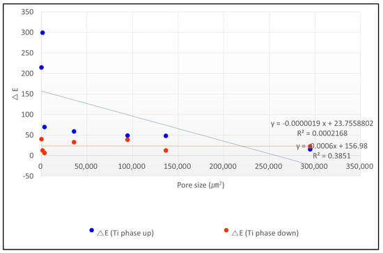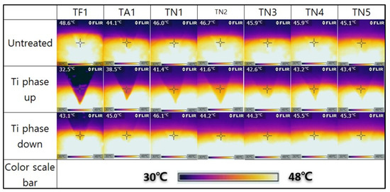 | Pore Size of Sputtered Specimens (μm2) | Electromagnetic Field of Titanium Phase Up (V/m) | Electrical Resistance (kΩ) | IR Transmittance of Titanium Phase Front (%) | Surface Temperature of Titanium Phase Up (°C) | ΔE Value of Titanium Phase Up | ΔT Value of Titanium Phase Up |