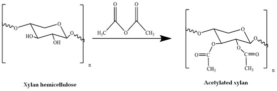 Reaction of xylan with acetic anhydride.