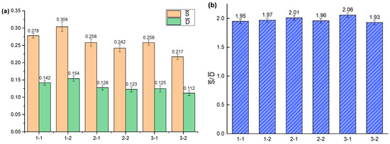 It can be seen that the center distance of dung beetle abdominal pits ranges from 0.2 to 0.32 mm and the diameter from 0.1 to 0.16. The ratio between the average center distance and the average diameter in Table 1 is shown in Figure 3.