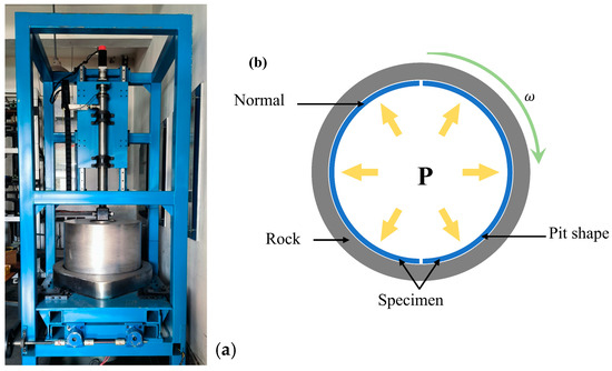 In order to simulate the actual drilling conditions of aluminum alloy drill pipe in the well and measure the wear resistance of the laser cladding layer, a drill pipe wear test bench was designed and machined (Figure 9a). Its working principle is shown in Figure 9b. The bench is capable of conducting wear tests on normal and biomimetic structures simultaneously. This ensures that the test conditions remain consistent and leads to improved reliability of the results.