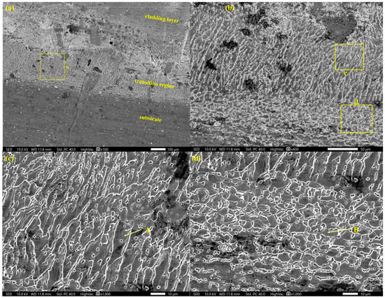 (a) The SEM micrographs of the cladding layer; (b) EDS analyses of point C.