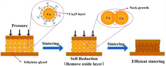 Schematic diagram of the self-reducing and sintering process of conductive Cu ink [37].