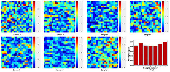 Weak absorption maps of the surface of samples from different etching processes. The spatial scanning area was a 20 mm × 20 mm square.