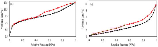 As shown in Figure 6, the adsorption-desorption isotherm illustrates the increase in the volume of adsorbate uptake of the two materials.