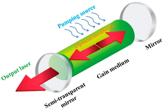 The continuous generation of lasers must satisfy three conditions: population inversion, a threshold requirement, and a resonance condition. Irradiation of energy (excitation light) to the laser medium from the outside causes a large number of atoms to jump from a low energy ground state (E1) to a specific excited state (E3), resulting in stimulated radiation that dominates and releases photons with specific energy. After reaching the threshold requirement, photons are continuously generated and amplified 10~1000 times in the resonant cavity to form a laser of a specific wavelength. Therefore, population inversion and the threshold condition are necessary but not sufficient. In order to advance these two prerequisites, scholars have continuously explored and innovated in materials, structure, and preparation techniques [2]. Many remarkable achievements in the innovation of organic laser devices have been made (Figure 1). A more advanced doping system with high gain, comprehensive design, and construction of the micro-cavity structure with low loss and high Q value has also been created to continuously reduce excitation threshold conditions and make lasers easier to realize. Thus, they pave the way for practical applications of organic laser devices.