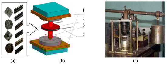 Particular attention should be paid to the roughness, cleanliness, and accuracy of the surfaces of the contacting bodies. The load N is selected so that in the zone of contact, the average stresses at the connection are equal to the Brinell hardness of the material of flat samples. In this case, as shown in the works [14,15], at relative embedding, flat plastic contact and some «spreading» of surfaces are provided, leading to the breakage of foreign coatings (oxide and sorbed films) and the connection of pure (juvenile) metal surfaces.