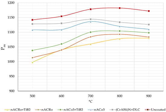 - the lowest values are provided by the application of coatings: nACo3+TiB2; nACRo+TiB2 when milling EP99 and nACRo+TiB2; nACRo when milling EK61;